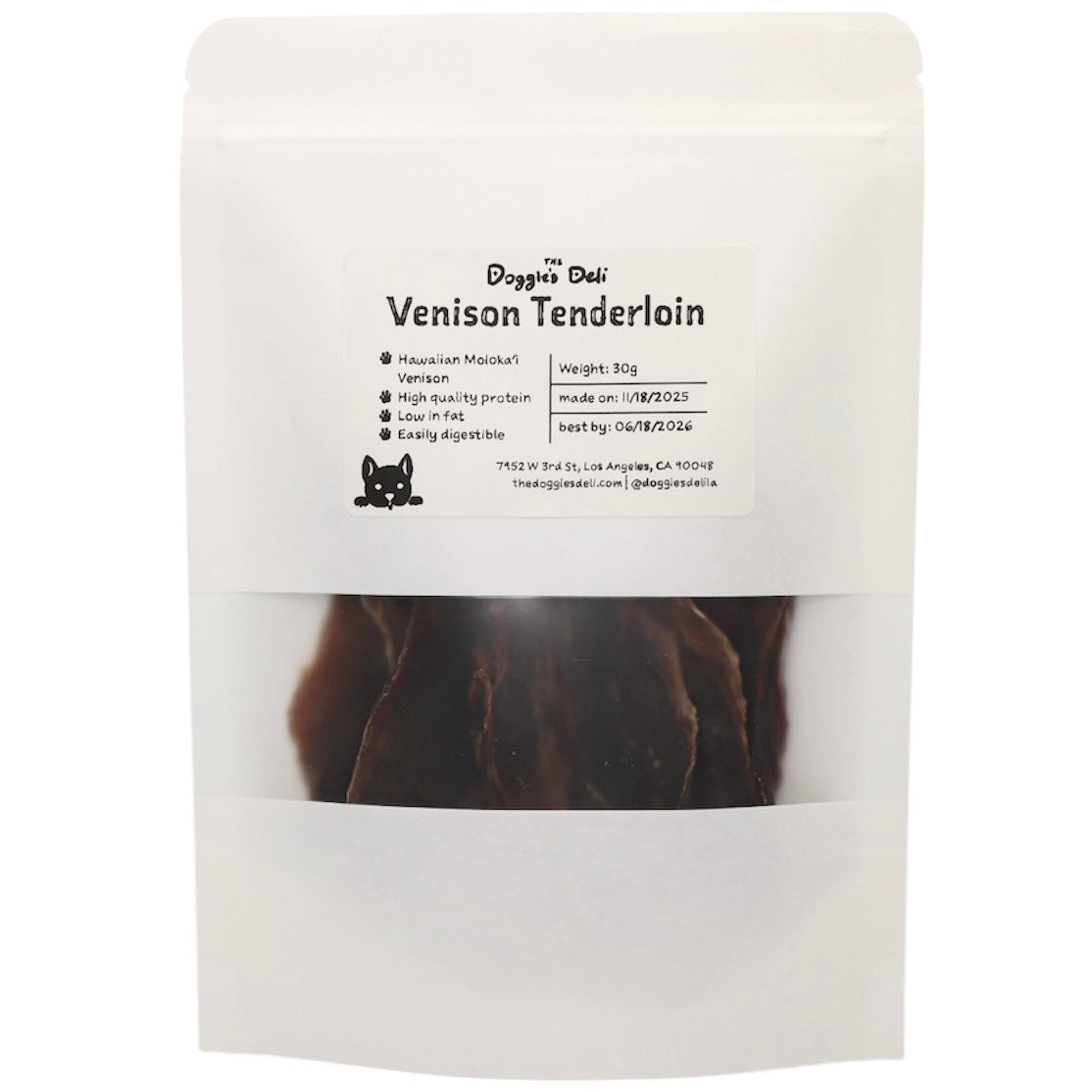 Give your dog a healthy and delicious treat with Venison Tenderloin from The Doggie’s Deli. Made from 100% high-quality venison sourced from New Zealand, these jerky treats offer a protein-packed snack your dog will love. Carefully dehydrated to retain its natural flavor and nutrients, each strip is free from additives, preservatives, and fillers, providing a pure and wholesome treat.